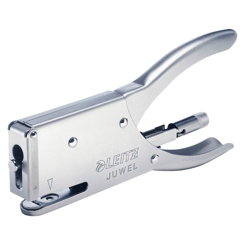 LEITZ Heftzange, Juwel 5556, Handheftzange, Heftgeräte, Heftklammern, Bürobedarf, Papier heften, geschlossene Heftung, Hinterlademechanik, robuste Heftzange