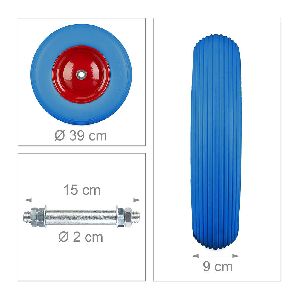 Schubkarrenrad Vollgummi blau Stahl Felgen, Achse 2,0 cm